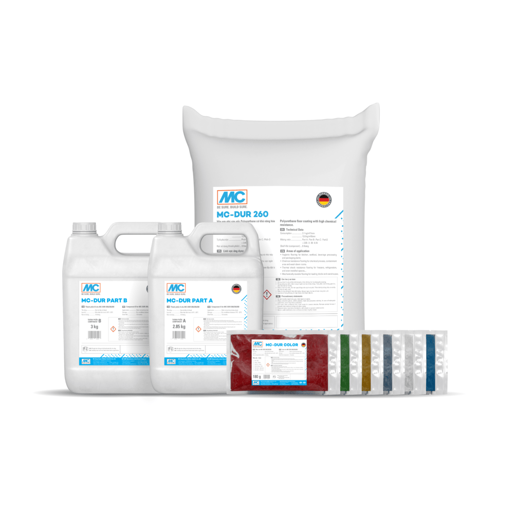 MC-DUR 260 is a 4-component polyurethane trowel applied in thickness of 6-12mm screed. For industrial application and repairing system in matt anti-skid finish offering versatility in performance, aesthetics and economics.