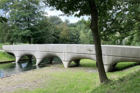 In bê tông 3D đã được thử nghiệm trong xây dựng cầu nhỏ, tường chắn hoặc các dự án hạ tầng quy mô vừa. Trong đó, hạng mục xây dựng cầu đã thể hiện rõ nét sự khác biệt đáng kể nhờ những cải tiến của công nghệ này. Với khả năng tạo ra cấu kiện có hình dạng phức tạp mà ván khuôn thông thường không làm được, các kỹ sư có thể thiết kế nên những cây cầu vững chãi hơn, chịu tải tốt hơn với ít vật liệu hơn.